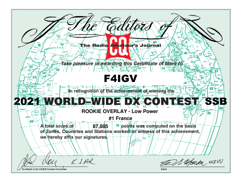 Soumission des logsVia le site officiel du CQWW après le concours (format Cabrillo)